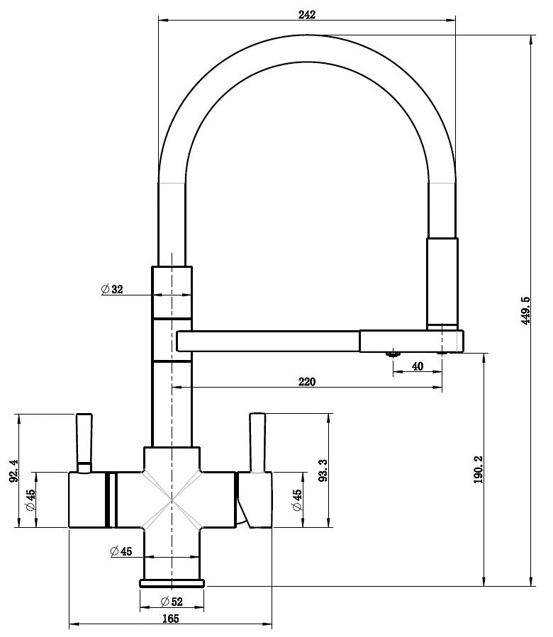 - @ 1 bar: (mixer) 9.3 l/m; (Boiling) 1.9 l/m